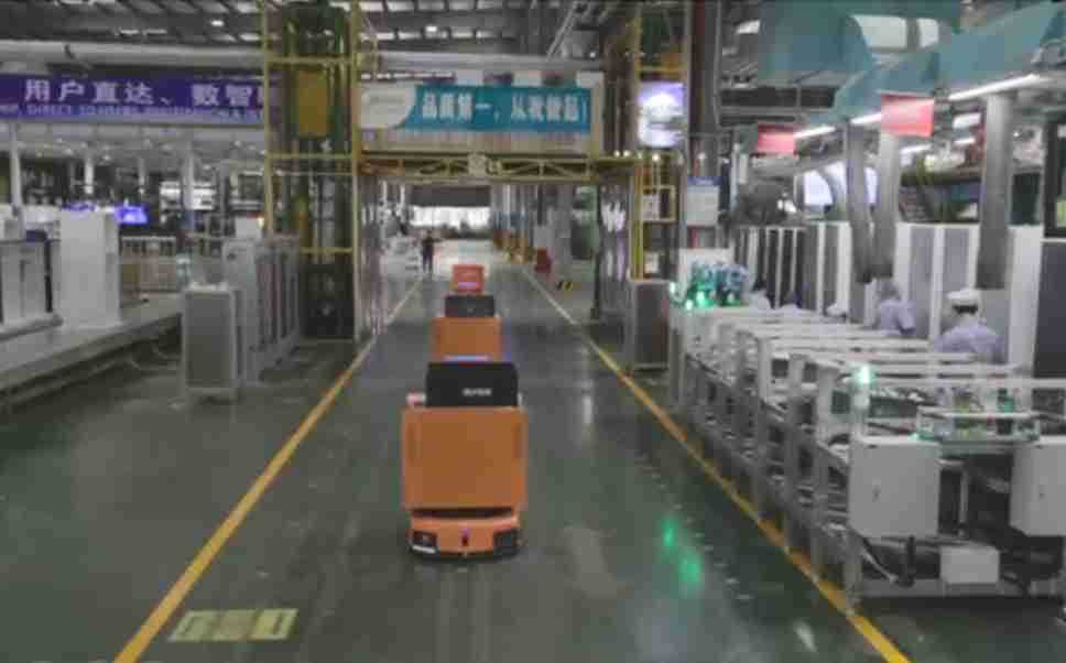 为车载冰箱物流配送打造的智能解决方案,,,,包含产中物流通过潜伏举升AMR搬运至线边,,,,产后成品物流智能仓储,,,,流程包含产中物流智能齐套入库,,线边安灯叫料AMR智能配送至线边,,,,成品入库、、、、出库,,,通过无人堆高车机器人,,智能仓储管理替代人工作业管理,,,实现更高存储、、更高效率、、、、更具柔性化的解决方案。。。。